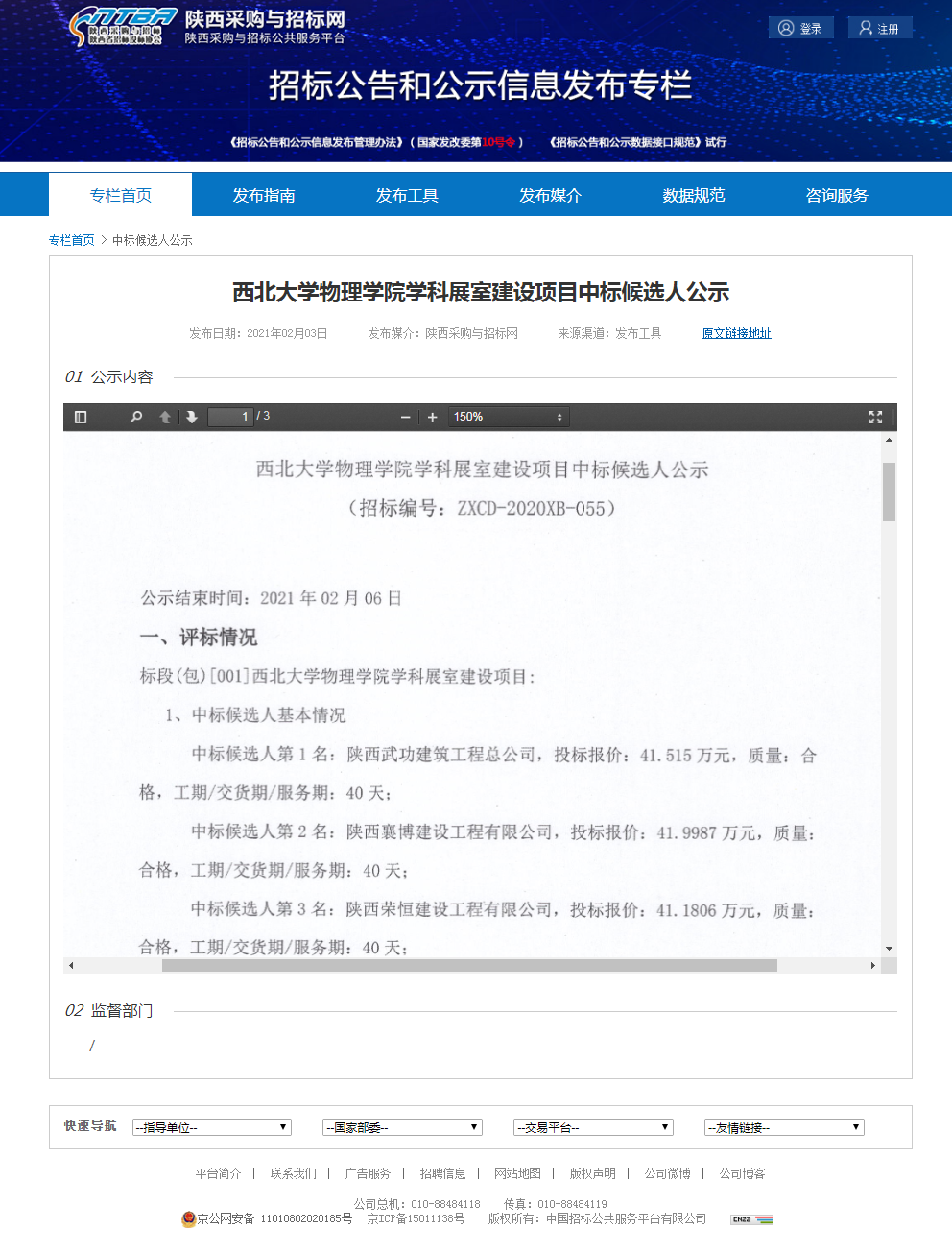必赢3003no1线路检测中心物理学院学科展室建设项目中标候选人公示 作者: 编辑:郭平 时间:2021-02-03 http://bulletin.sntba.com/candidateBulletin/2021-02-03/269328.html