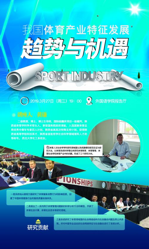 必赢3003no1线路检测中心2019年体育文化节体育文化讲座——我国体育产业特征发展趋势与机遇