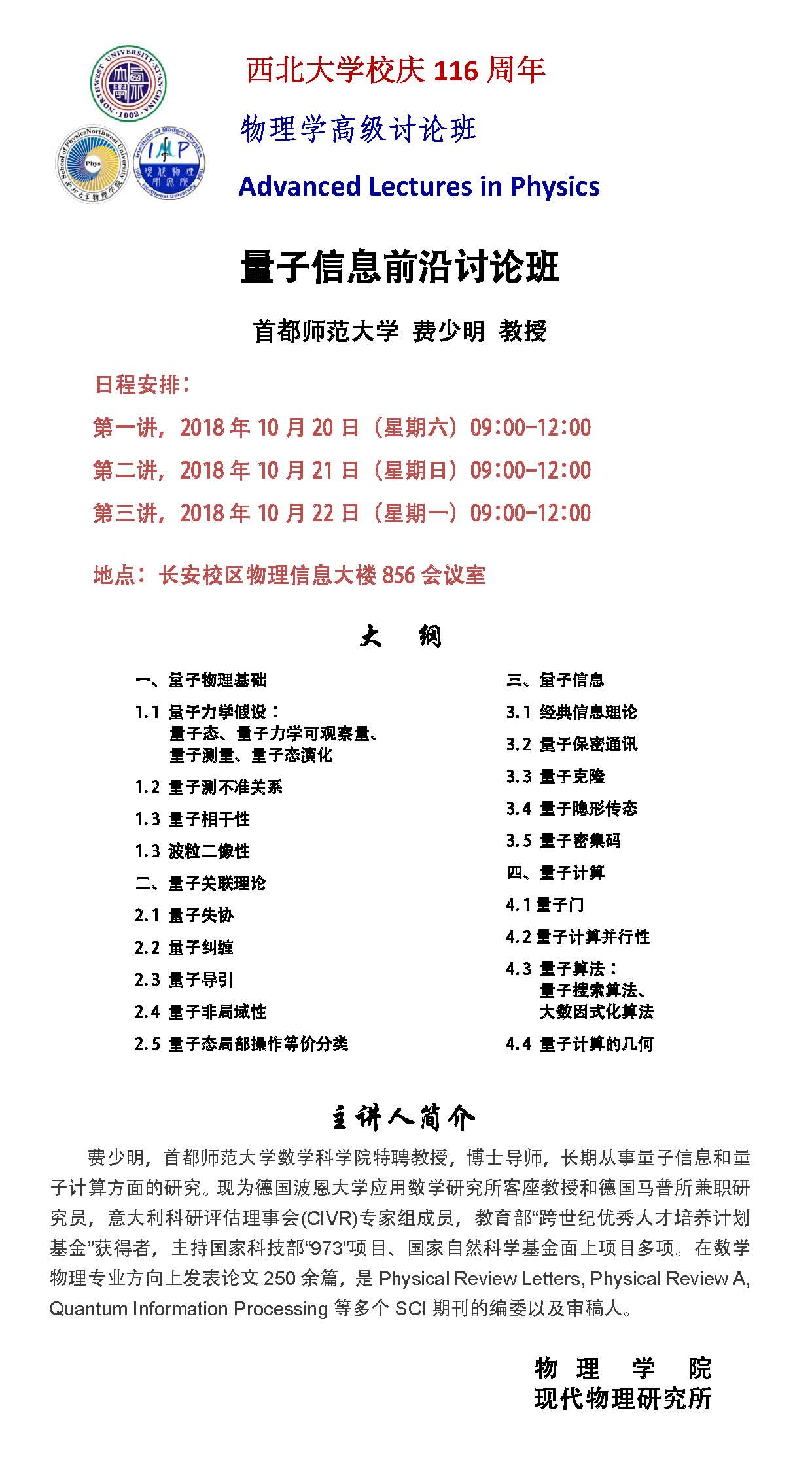必赢3003no1线路检测中心校庆116周年物理学高级讨论班-量子信息前沿
