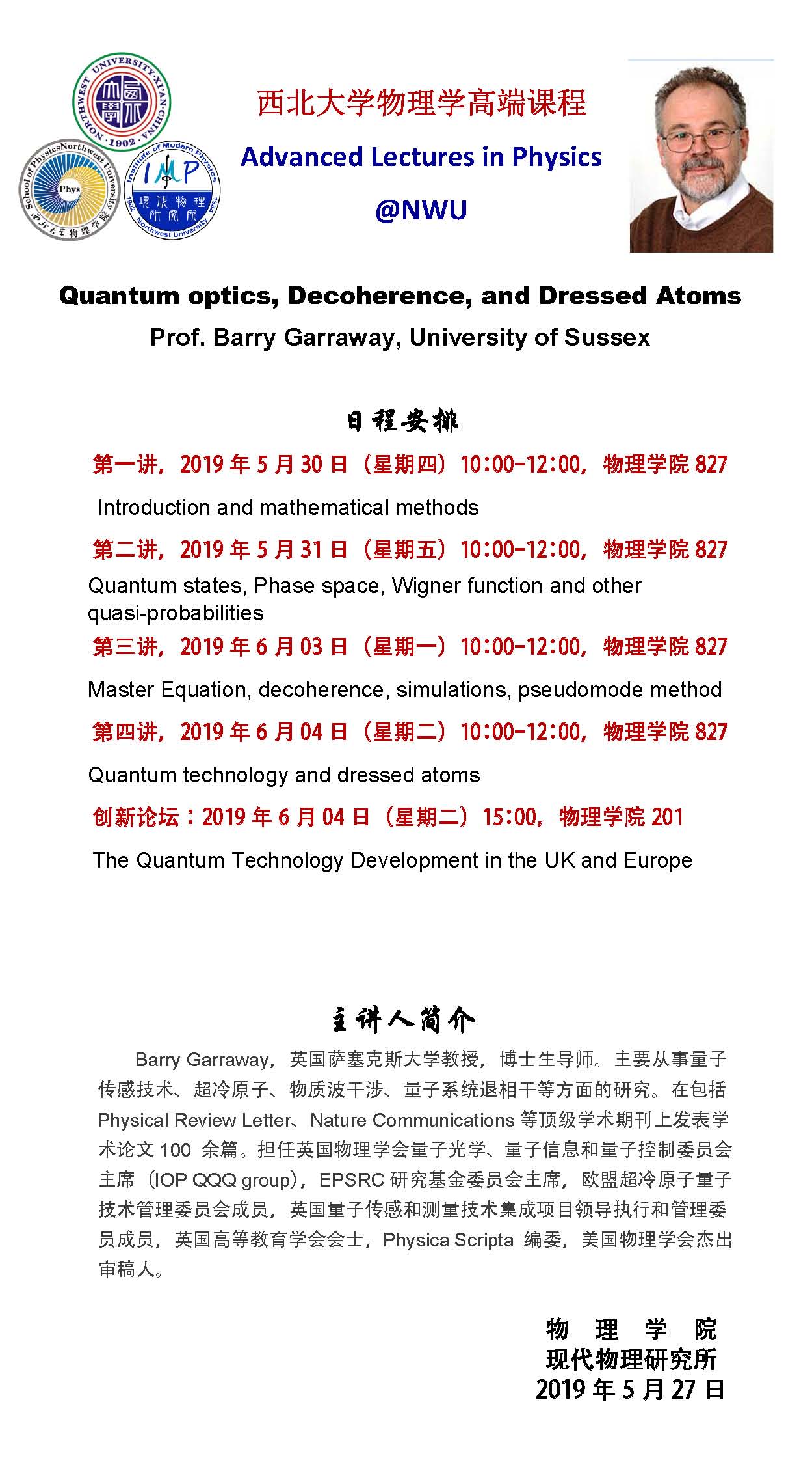 必赢3003no1线路检测中心物理学高端课程--Quantum optics, Decoherence, and Dressed Atoms