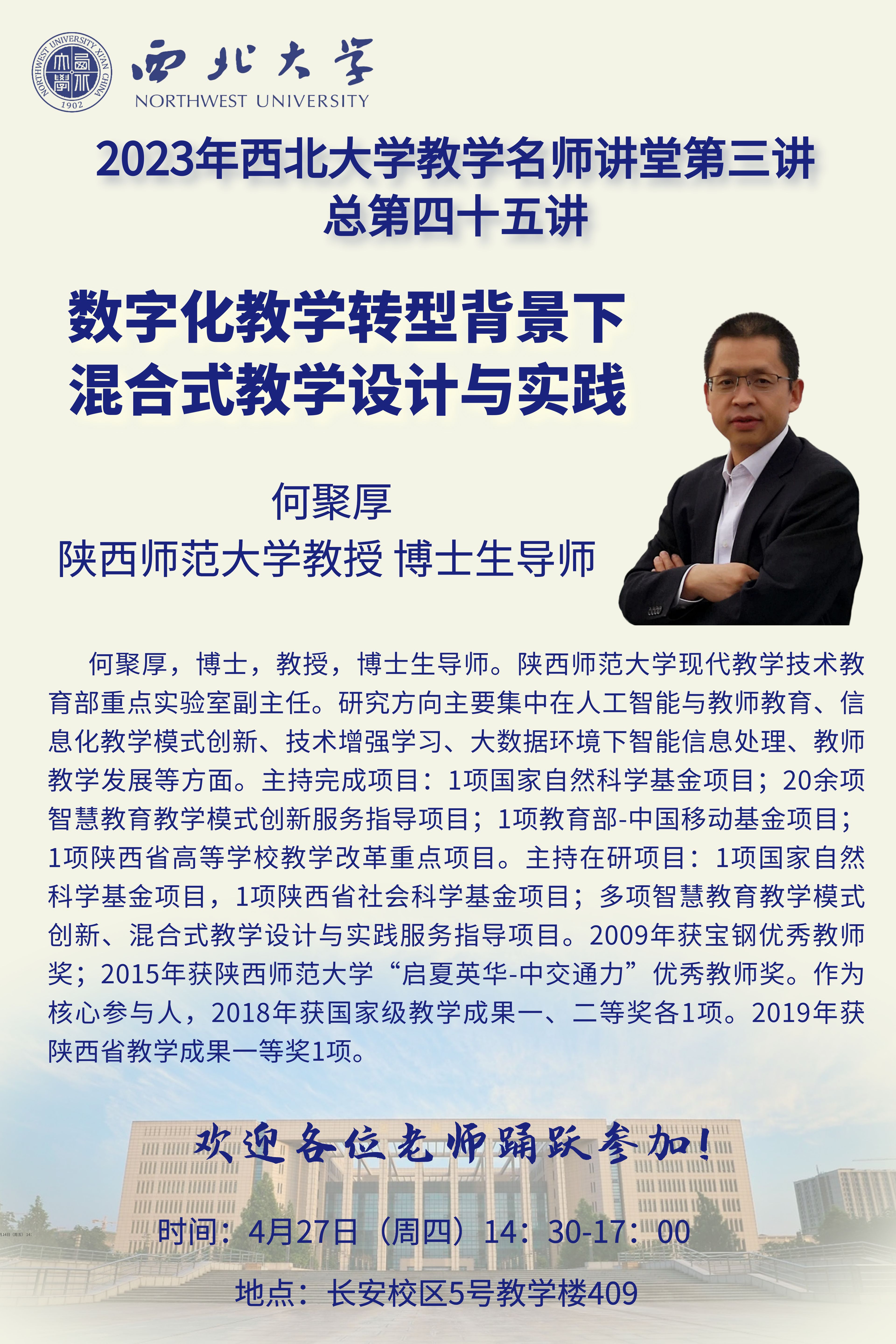 2023年必赢3003no1线路检测中心教学名师讲堂第三讲 ——数字化教学转型背景下混合式教学设计与实践