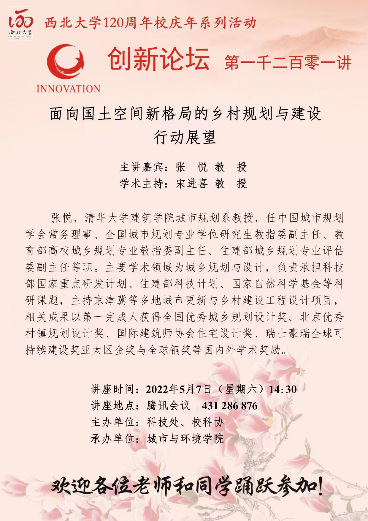 必赢3003no1线路检测中心创新论坛第一千二百讲暨120周年校庆年系列活动:5D模式--低碳城市的空间规划策略