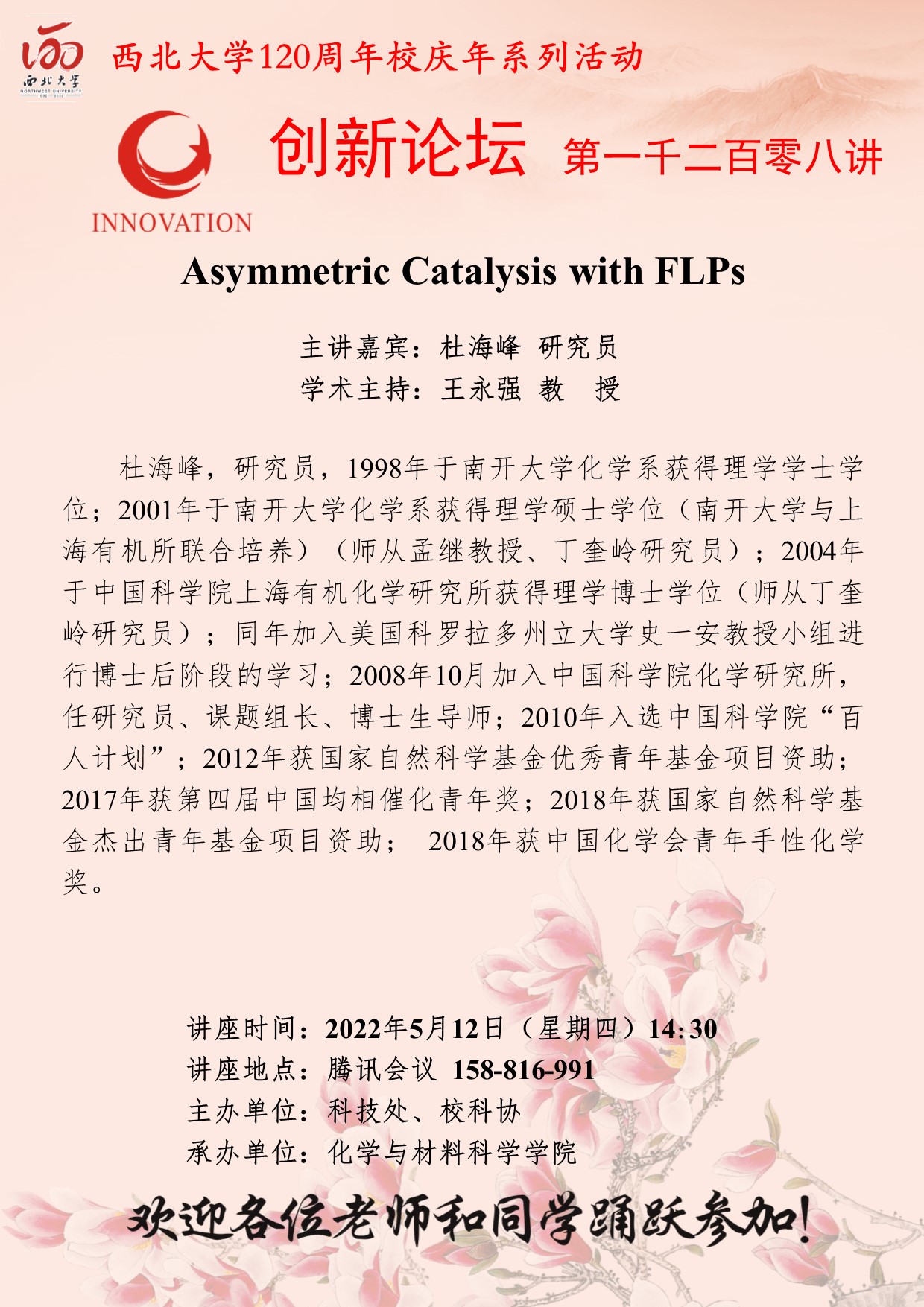 必赢3003no1线路检测中心创新论坛第一千二百零九讲暨120周年校庆年系列活动:有机催化不对称轴手性化学