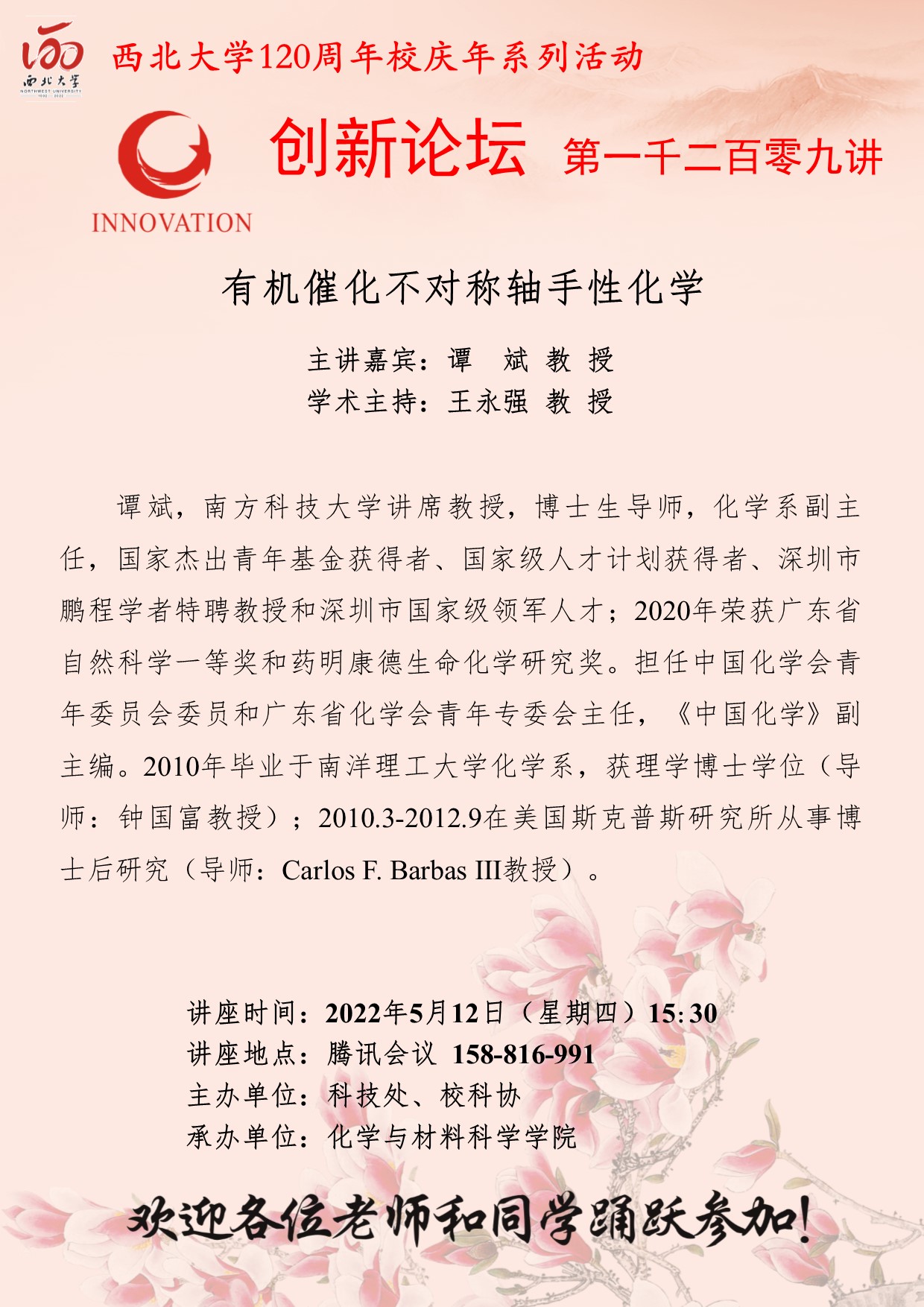 必赢3003no1线路检测中心创新论坛第一千二百一十讲暨120周年校庆年系列活动:多环天然产物合成中的环系构建