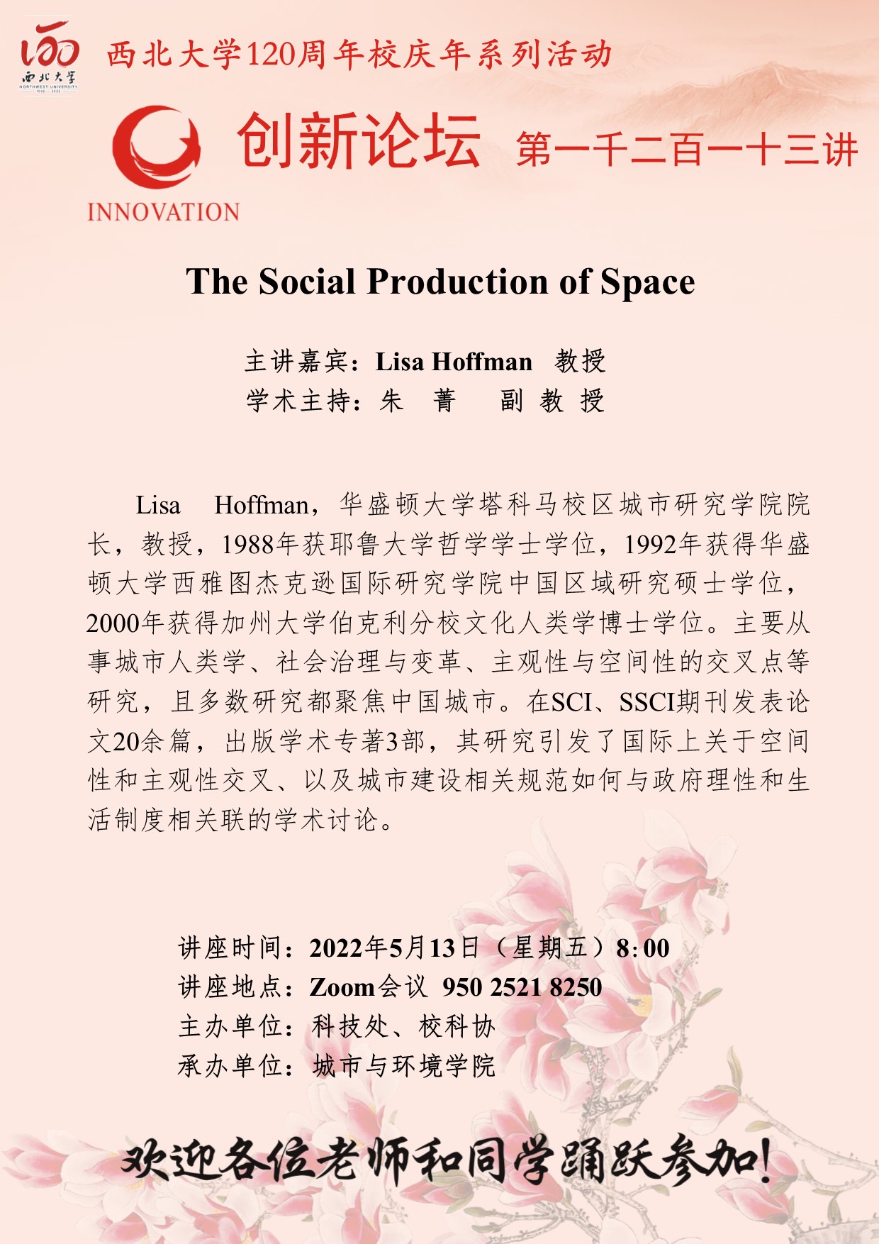 必赢3003no1线路检测中心创新论坛第一千二百一十三讲暨120周年校庆年系列活动:The Social Production of Space 作者:Lisa Hoffman 教授 编辑: 时间:2022-05-12