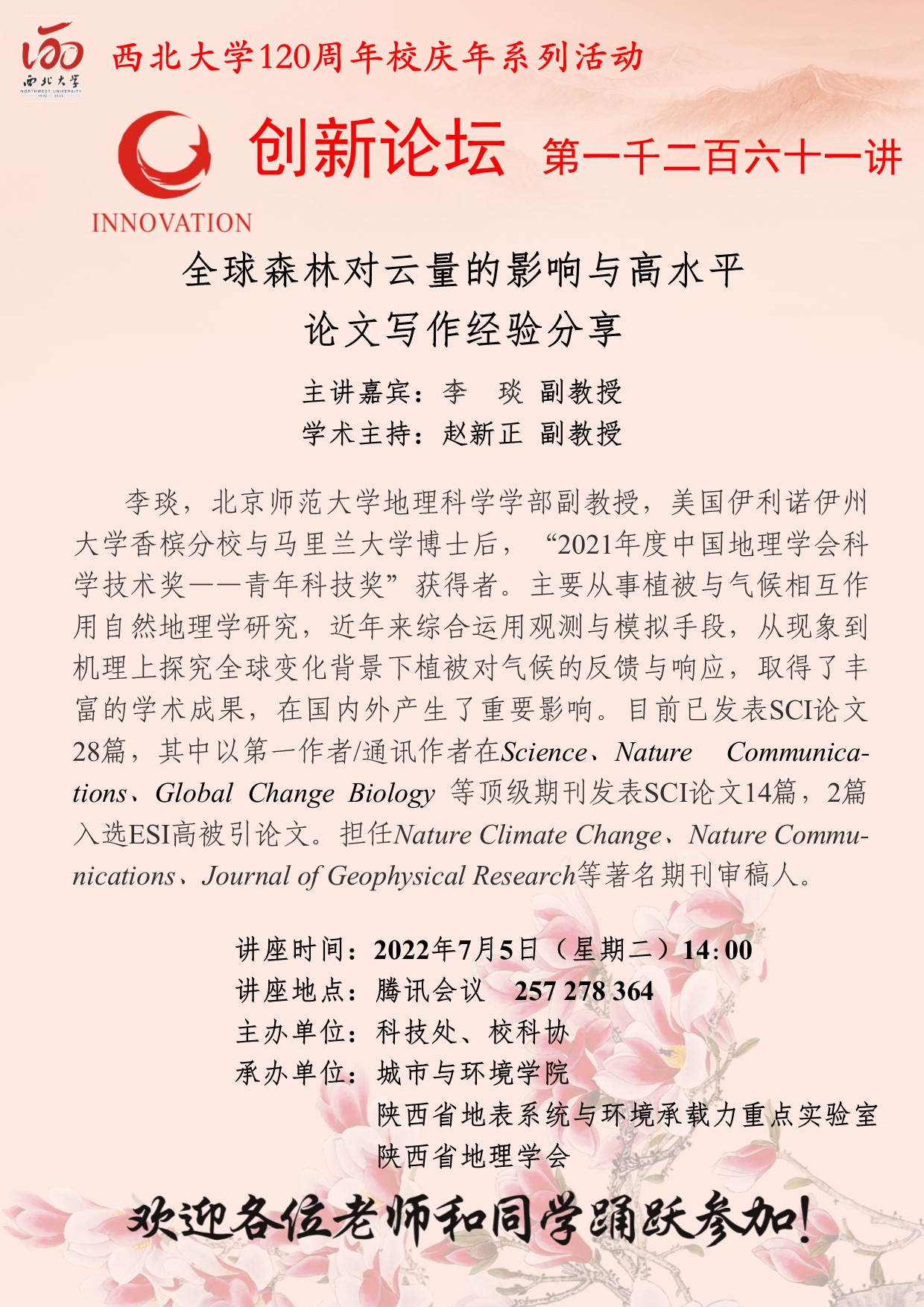 必赢3003no1线路检测中心创新论坛第一千二百六十二讲暨120周年校庆年系列活动:冻土区碳释放及其对全球变化的响应