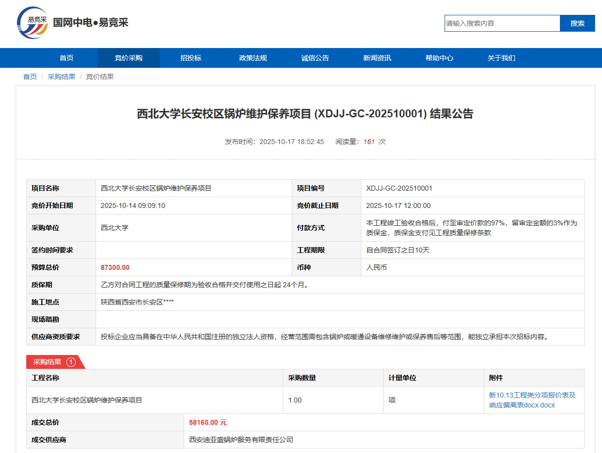 必赢3003no1线路检测中心锅炉排放污染物指标监测服务采购项目(XDJJ-FW-202509002)竞价结果公告