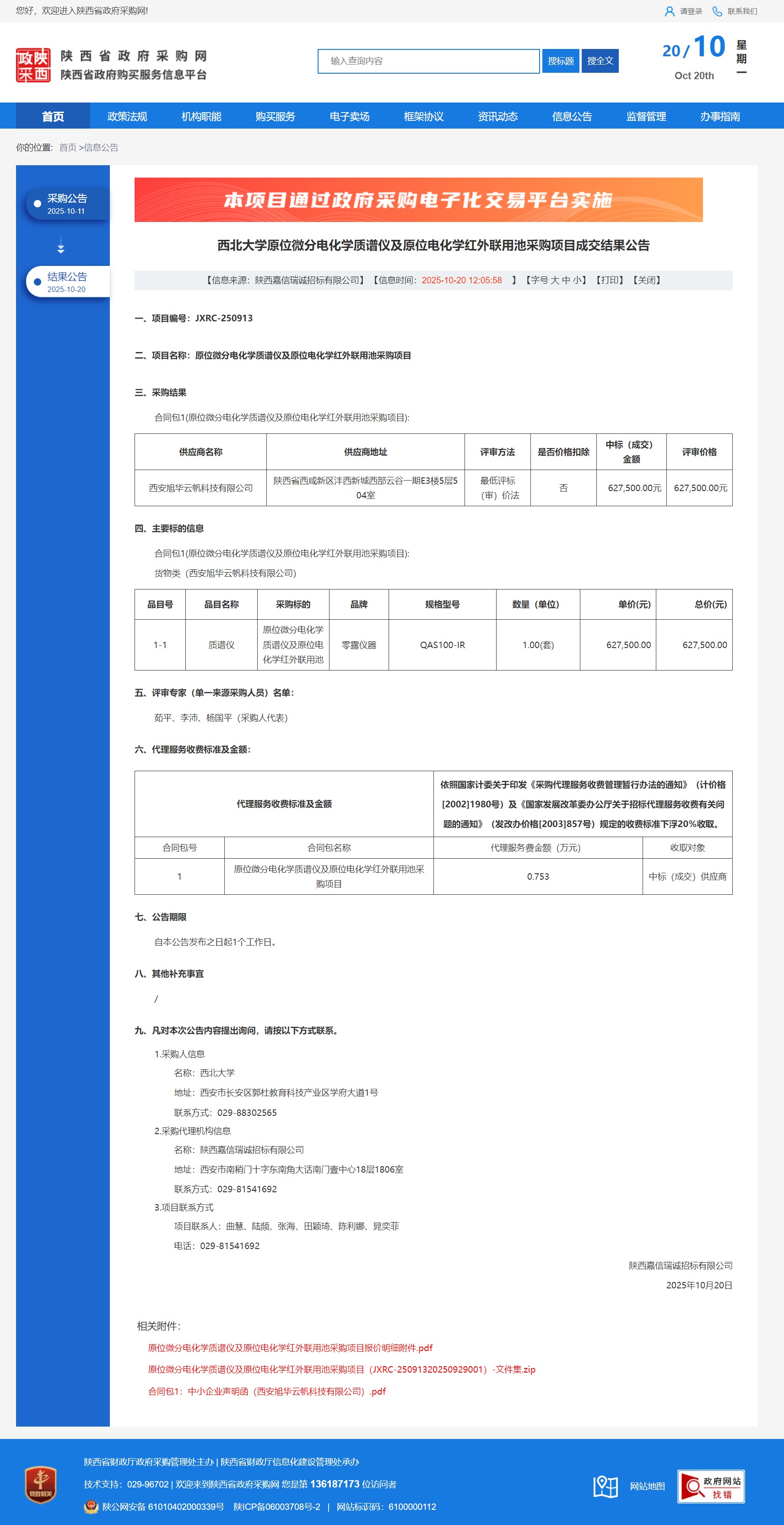 必赢3003no1线路检测中心原位微分电化学质谱仪及原位电化学红外联用池采购项目成交结果公告