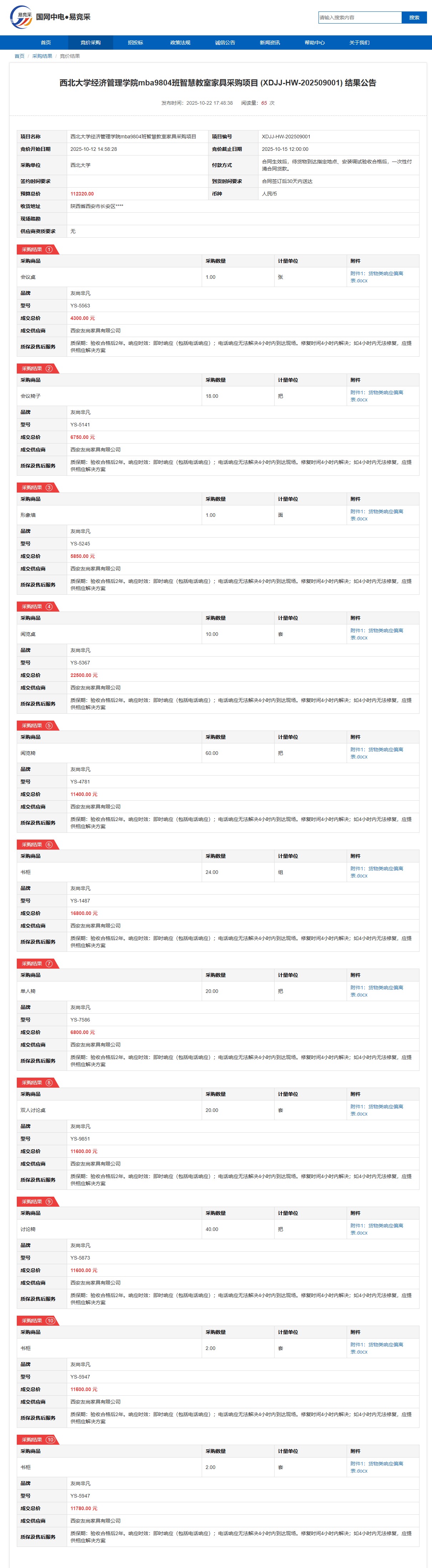 必赢3003no1线路检测中心经济管理学院mba9804班智慧教室家具采购项目(XDJJ-HW-202509001)竞价结果公告