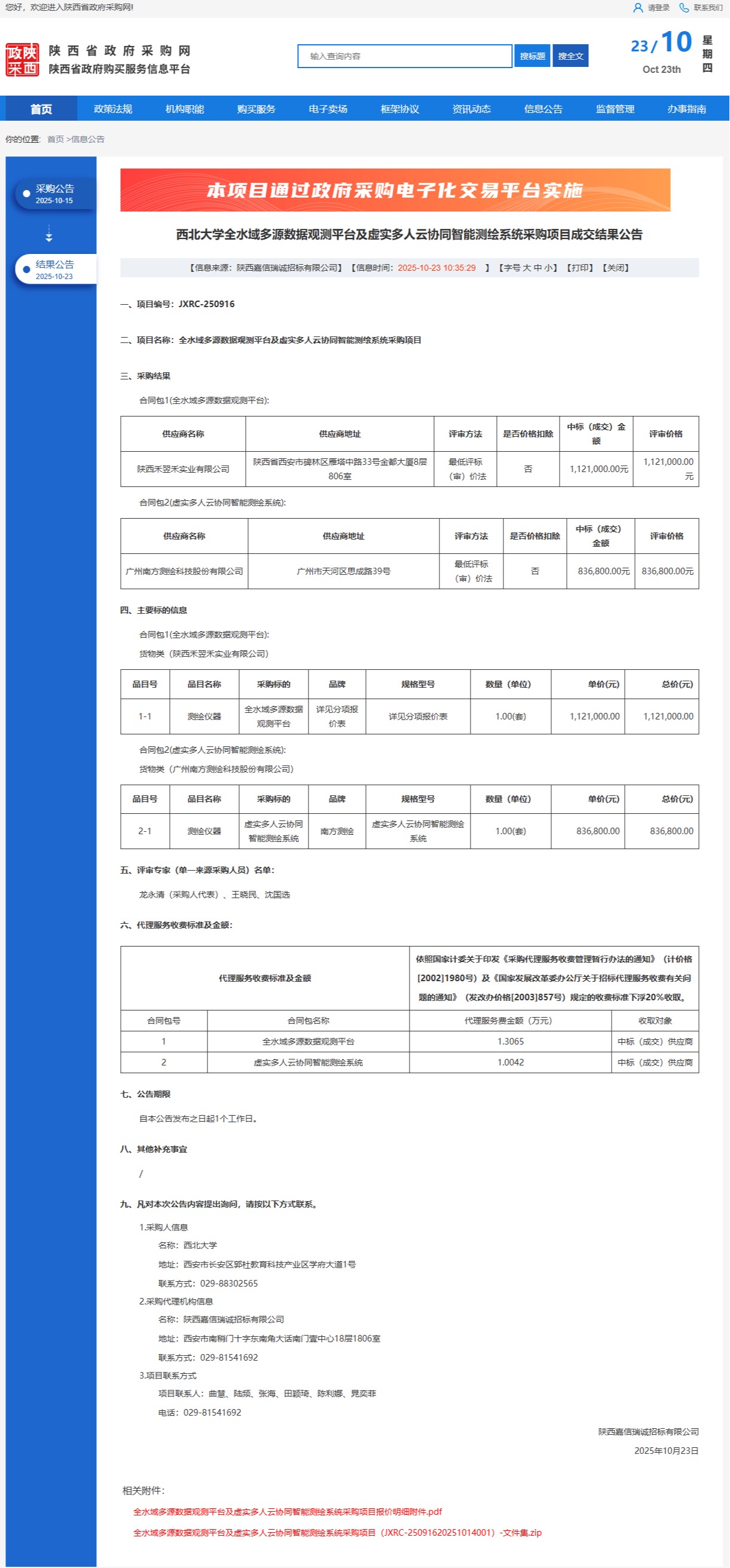 必赢3003no1线路检测中心全水域多源数据观测平台及虚实多人云协同智能测绘系统采购项目成交结果公告