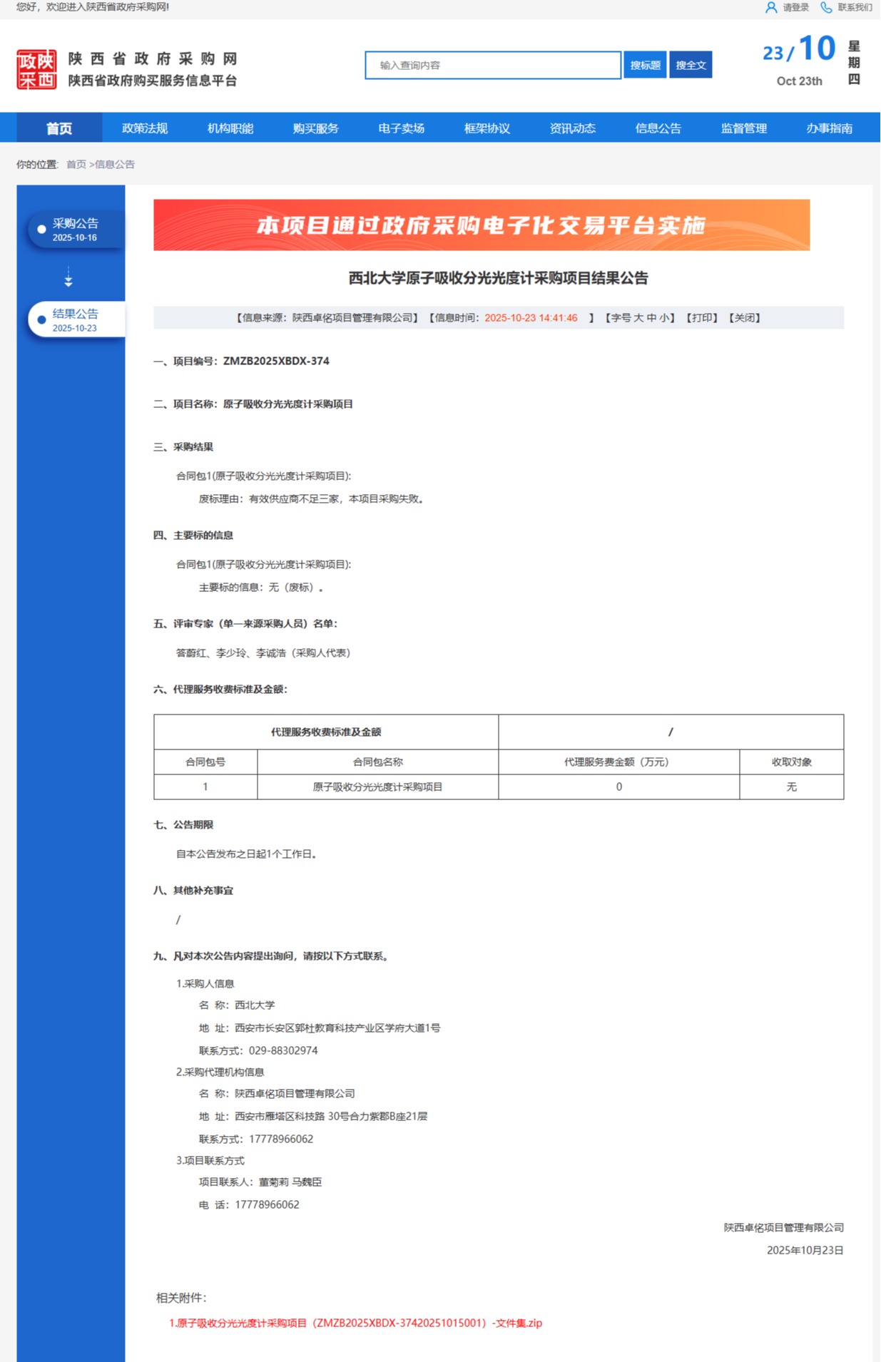 必赢3003no1线路检测中心原子吸收分光光度计采购项目结果公告