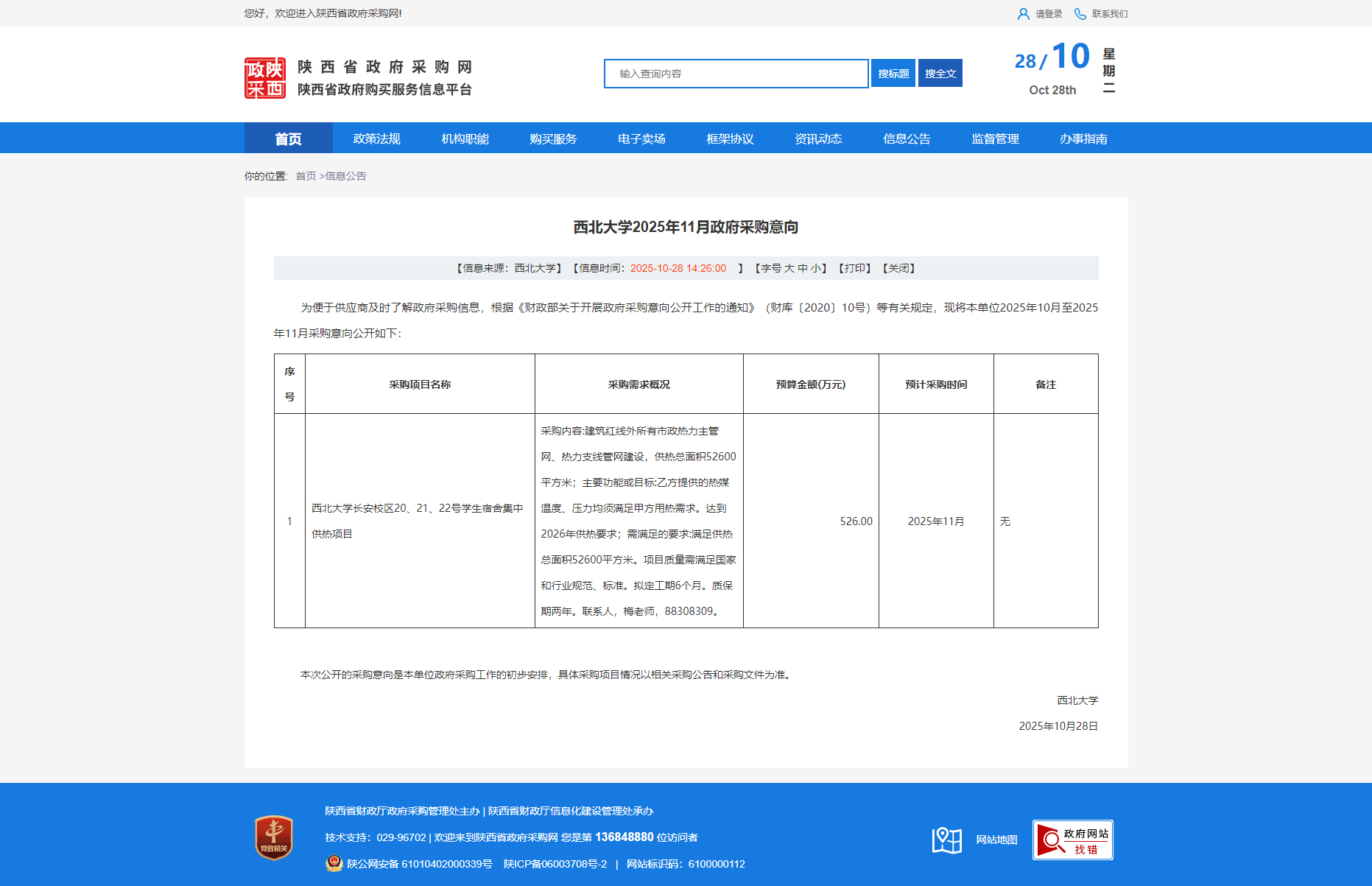 必赢3003no1线路检测中心2025年11月政府采购意向