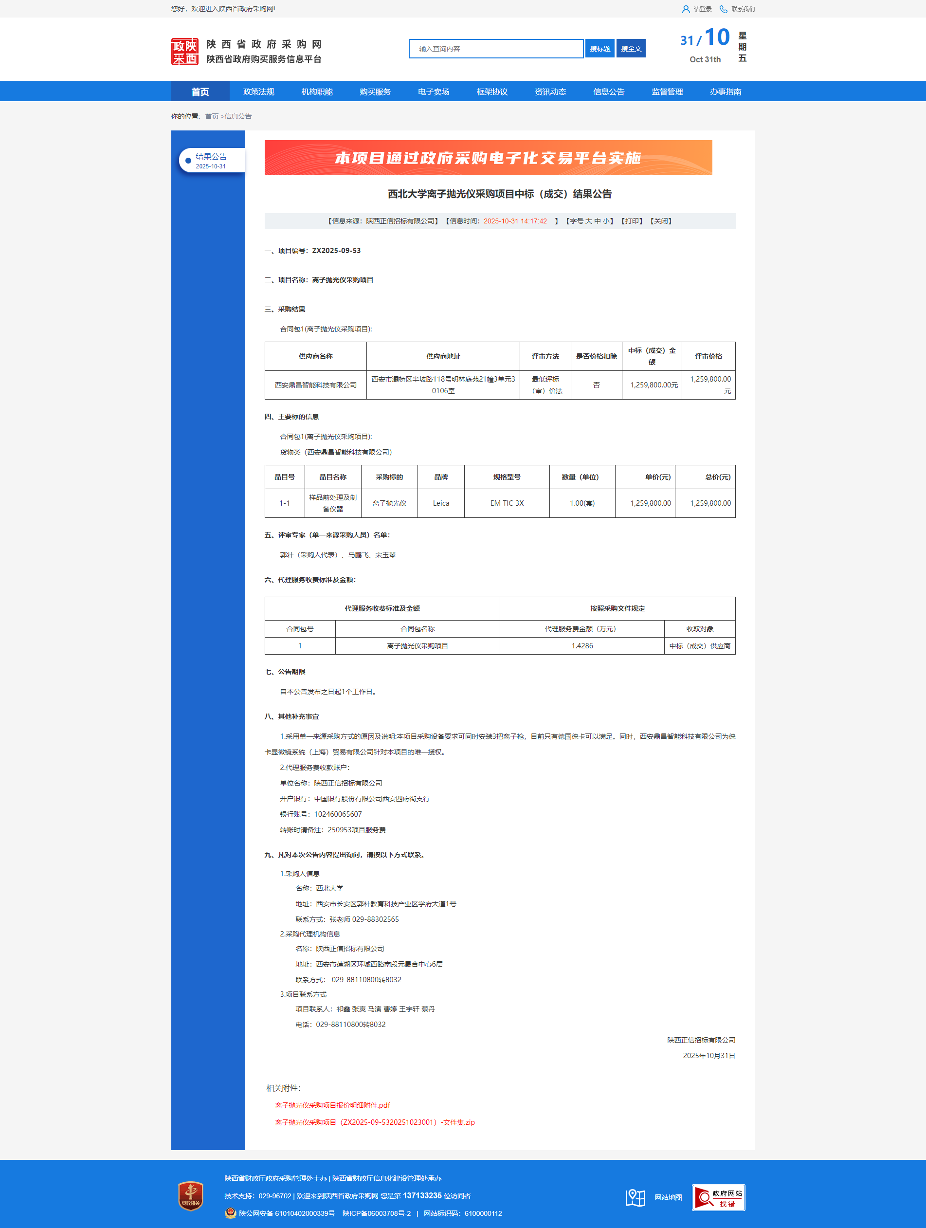 必赢3003no1线路检测中心高消光比铌酸锂强度调制器采购项目(XDJJ-HW-202505003)竞价结果公告