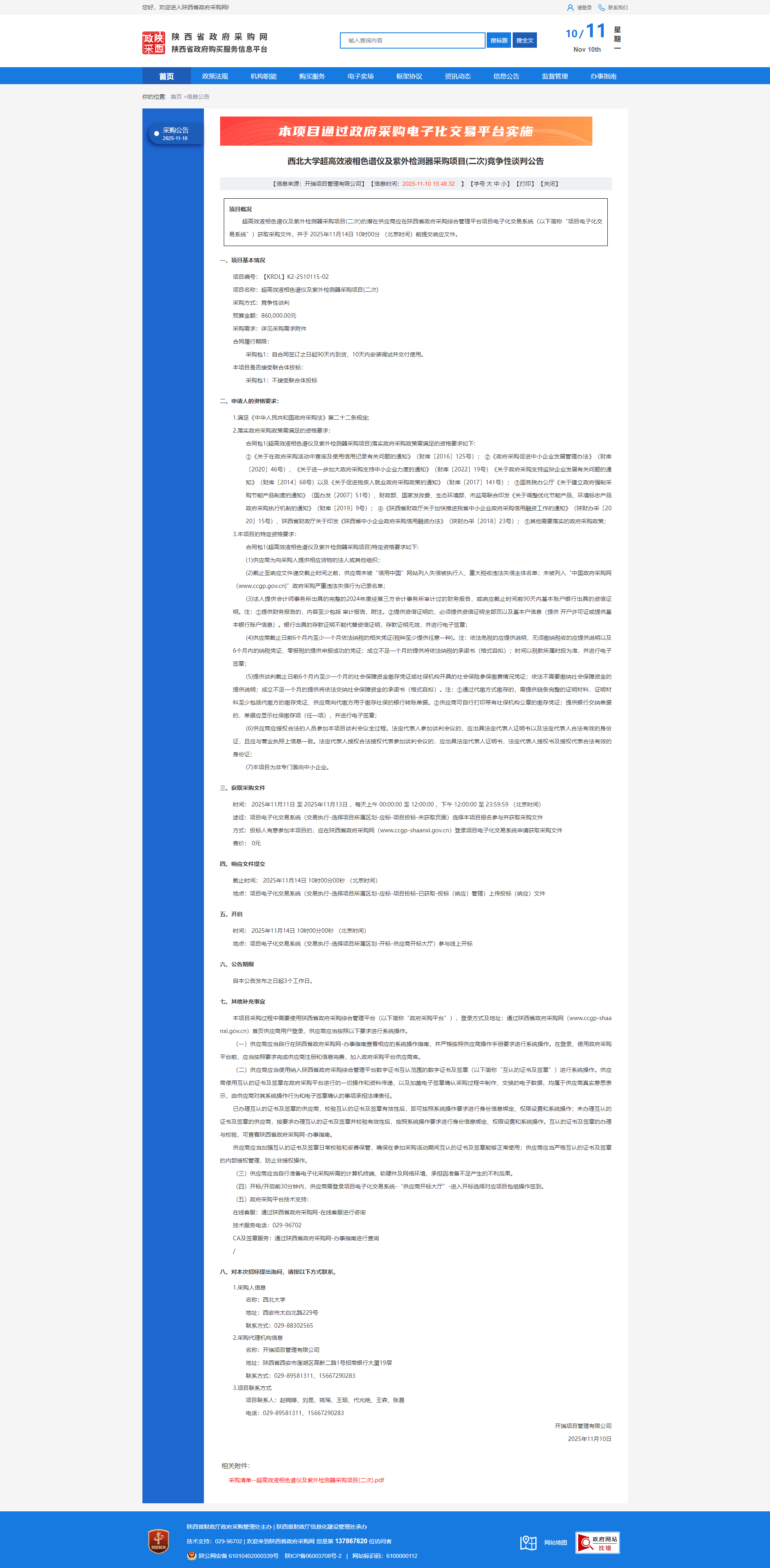 必赢3003no1线路检测中心超高效液相色谱仪及紫外检测器采购项目(二次)竞争性谈判公告