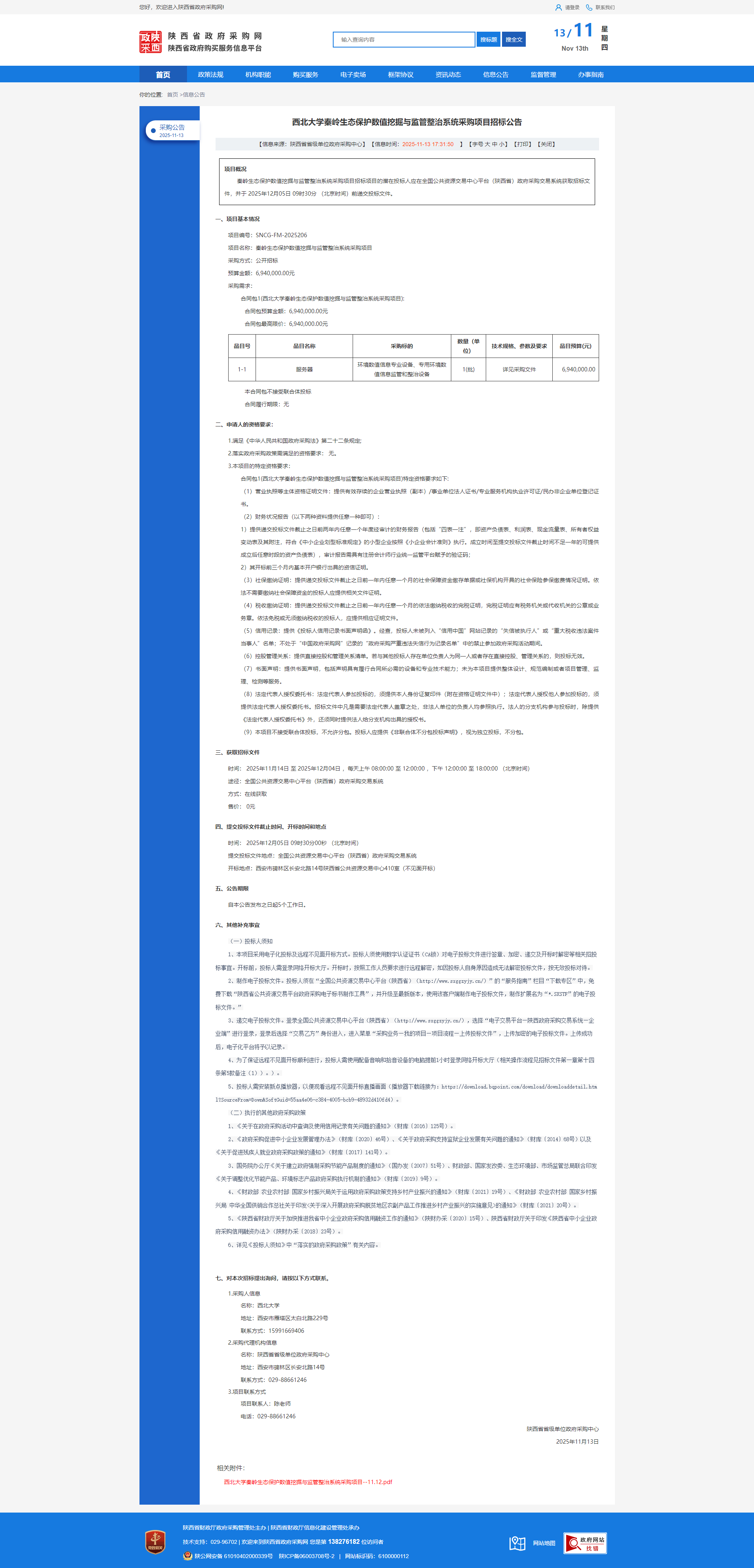 必赢3003no1线路检测中心秦岭生态保护数值挖掘与监管整治系统采购项目招标公告