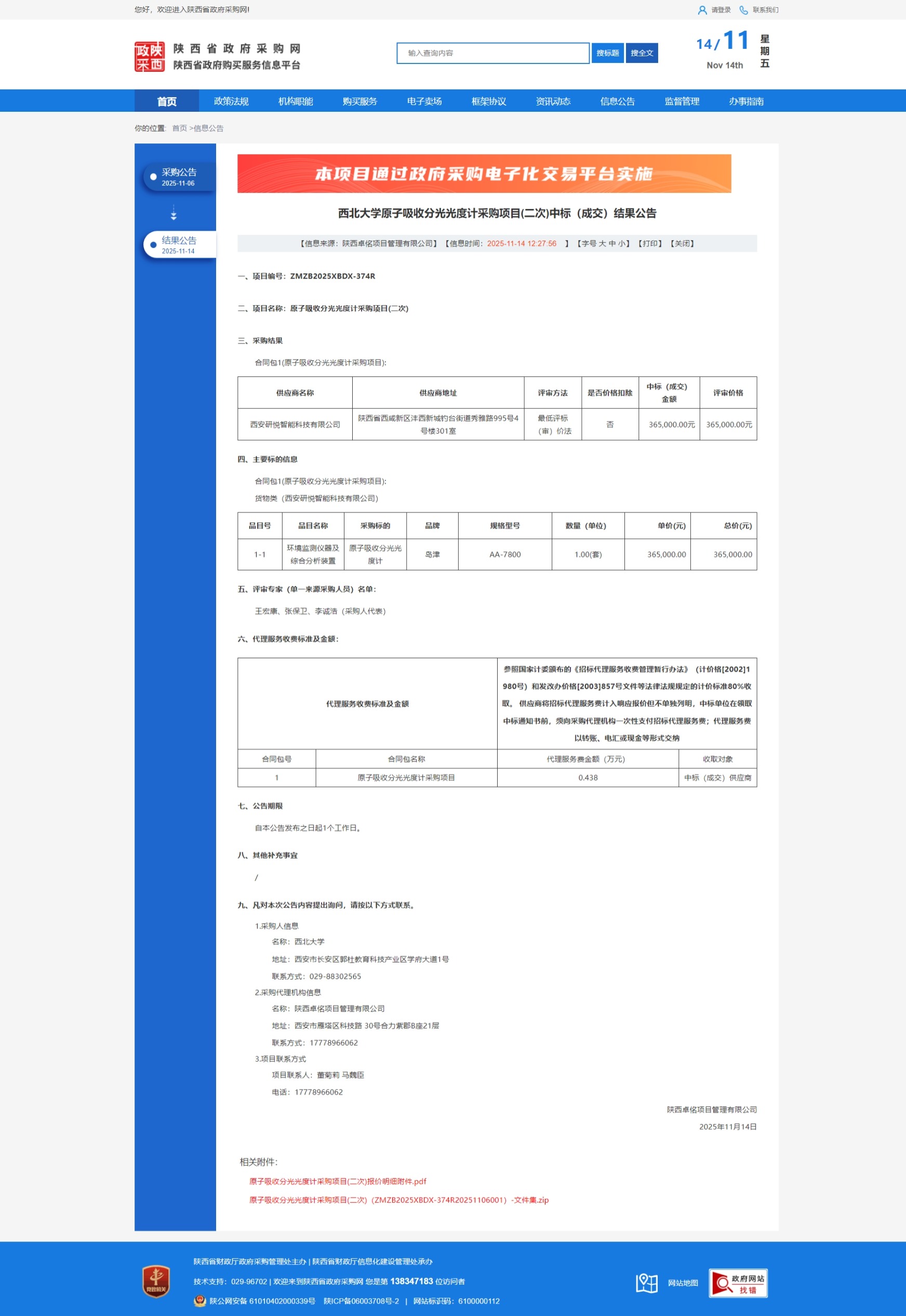 必赢3003no1线路检测中心原子吸收分光光度计采购项目(二次)中标(成交)结果公告 作者:国有资产管理处 编辑:国有资产管理处 时间:2025-11-14 原公告链接:https://www.ccgp-shaanxi.gov.cn/freecms/site/shaanxi/ggxx/info/2025/8a69c0019a7093fe019a809bb04552f8.html?noticeType=001023¬iceId=83d81046-c114-11f0-8063-08c0eb20c666