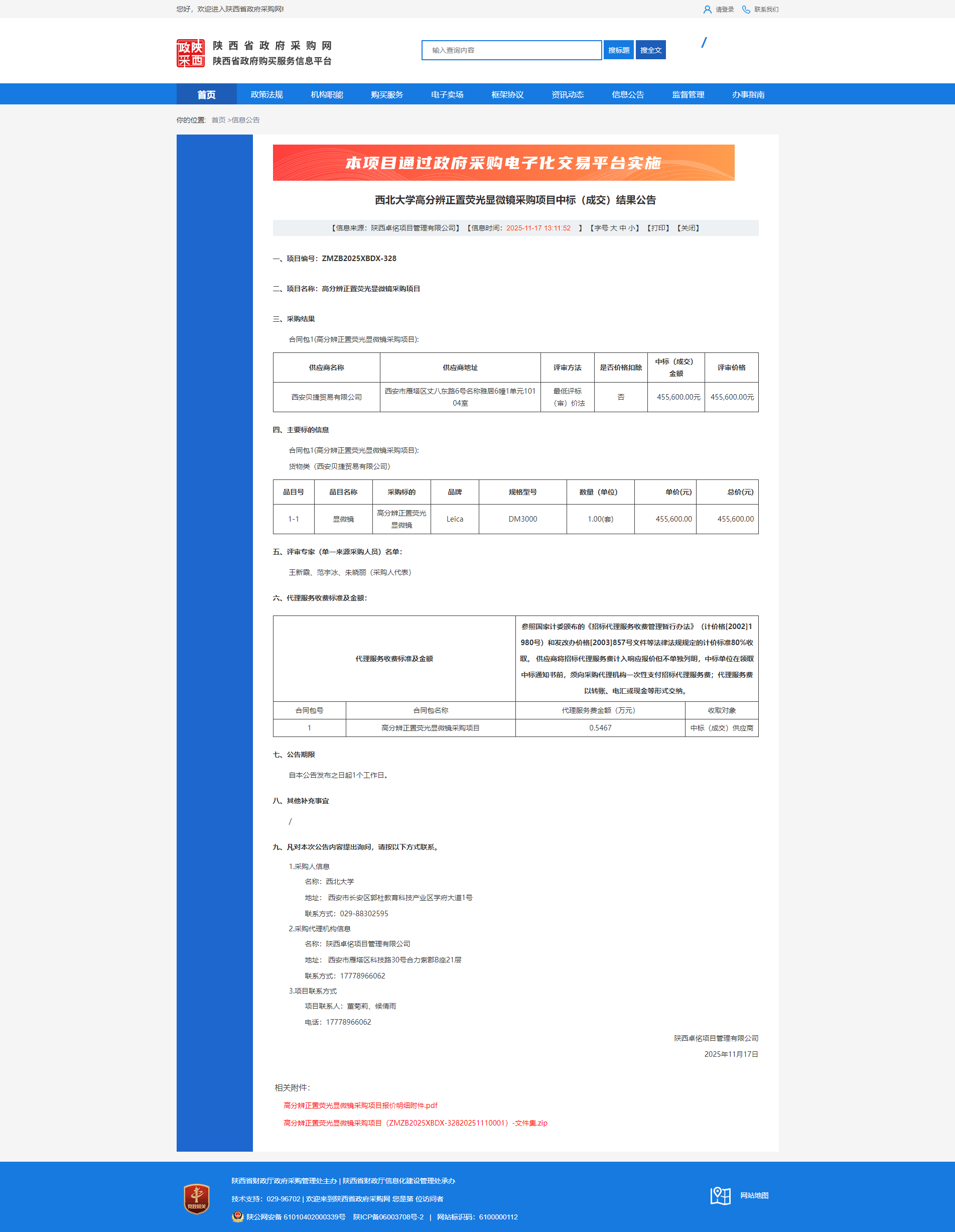 必赢3003no1线路检测中心高分辨正置荧光显微镜采购项目中标(成交)结果公告
