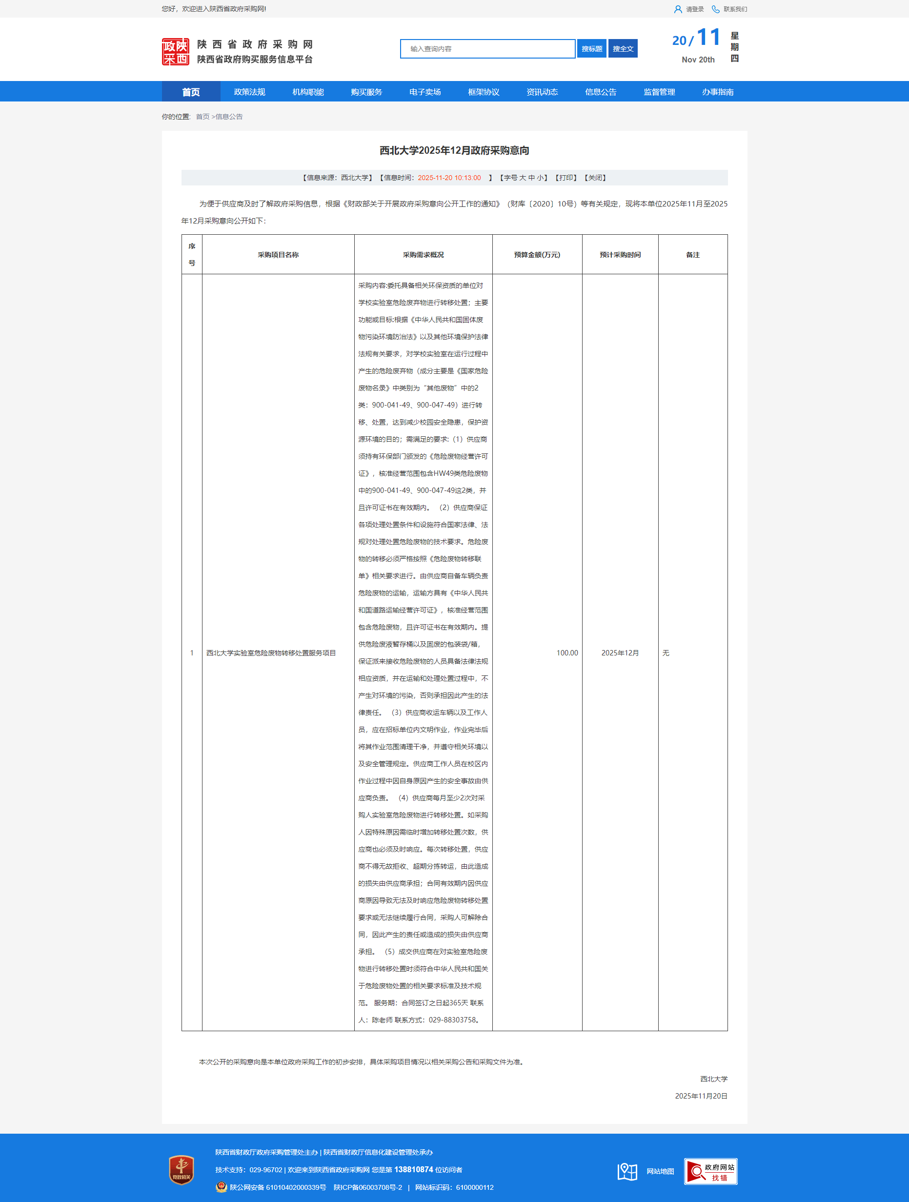 必赢3003no1线路检测中心2025年12月政府采购意向