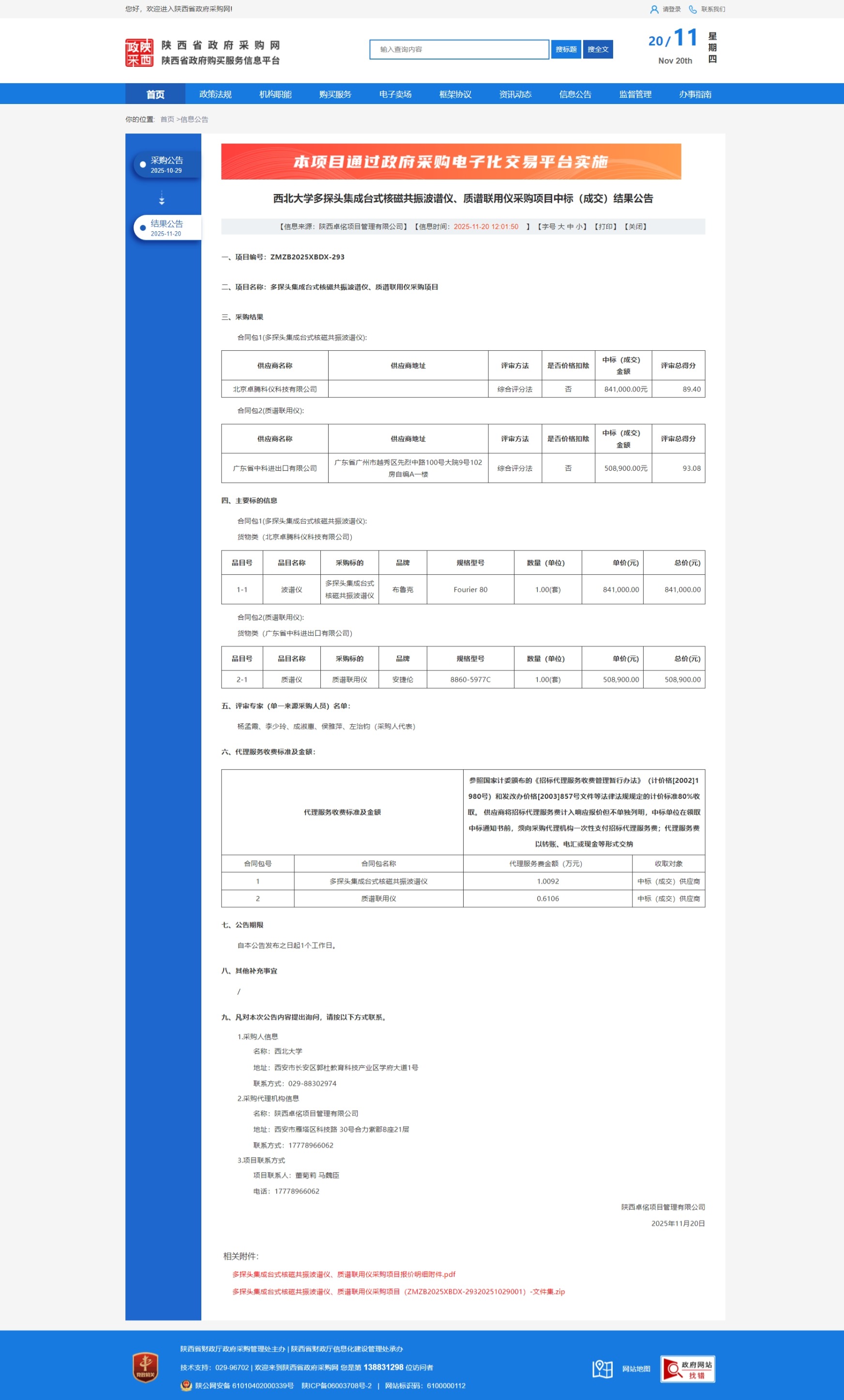 必赢3003no1线路检测中心多探头集成台式核磁共振波谱仪、质谱联用仪采购项目中标(成交)结果公告 作者:国有资产管理处 编辑:国有资产管理处 时间:2025-11-20 原公告链接:https://www.ccgp-shaanxi.gov.cn/freecms/site/shaanxi/ggxx/info/2025/8a69c7609a63685e019a9f5e895a45a5.html?noticeType=001021¬iceId=dfd54193-c5c7-11f0-8063-08c0eb20c666