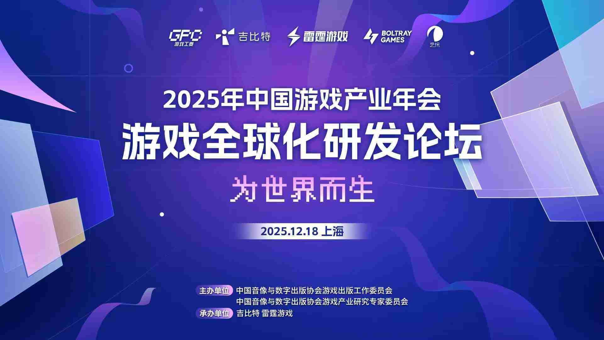 12月18日上午,,918.com&雷霆游戏承办的2025年中国游戏产业年会分论坛“为世界而生——游戏全球化研发论坛”在上海市徐汇区西岸国际会展中心顺利举办。。。本届论坛以“目标全球化的游戏该如何进行研发”为核心主题,,,集结918.com&雷霆游戏、、、、莉莉丝、、索尼互娱、、上海凉屋、、、北京师范大学等游戏产业界、、、、学术界专家,,共同探讨游戏全球化研发策略与文化融合路径,,,助力中国文化通过游戏产品走向世界。。